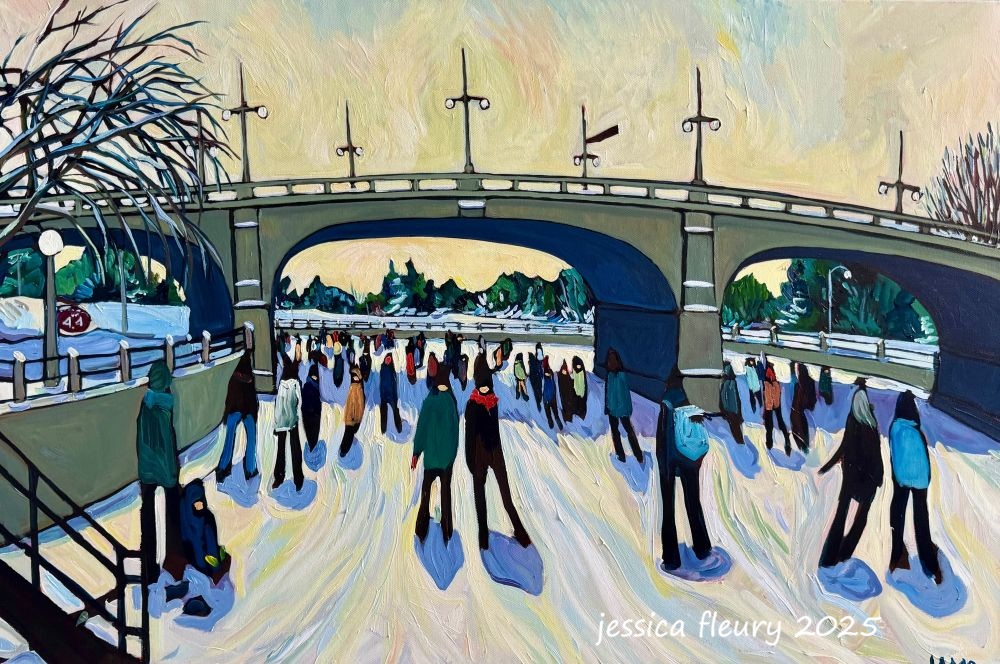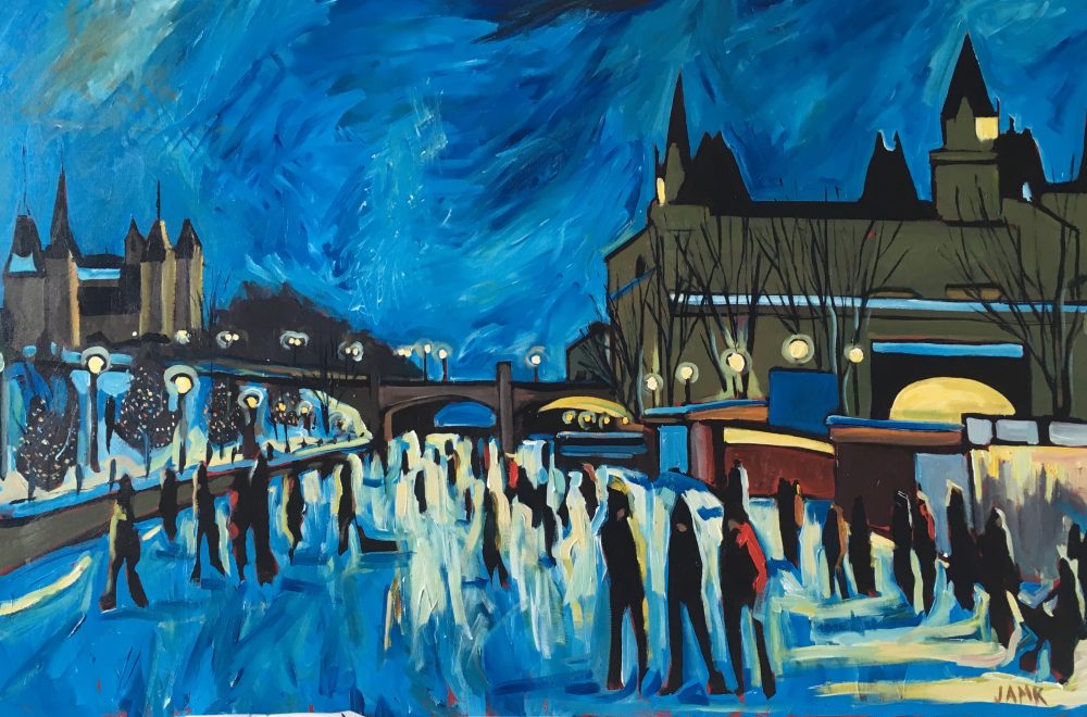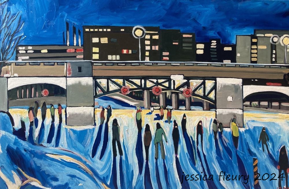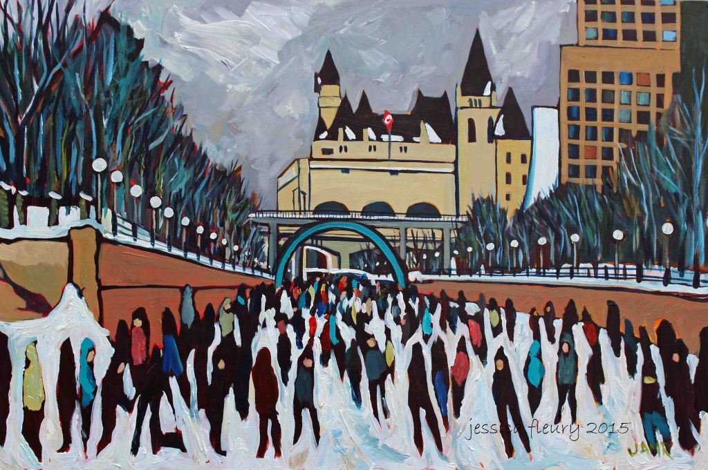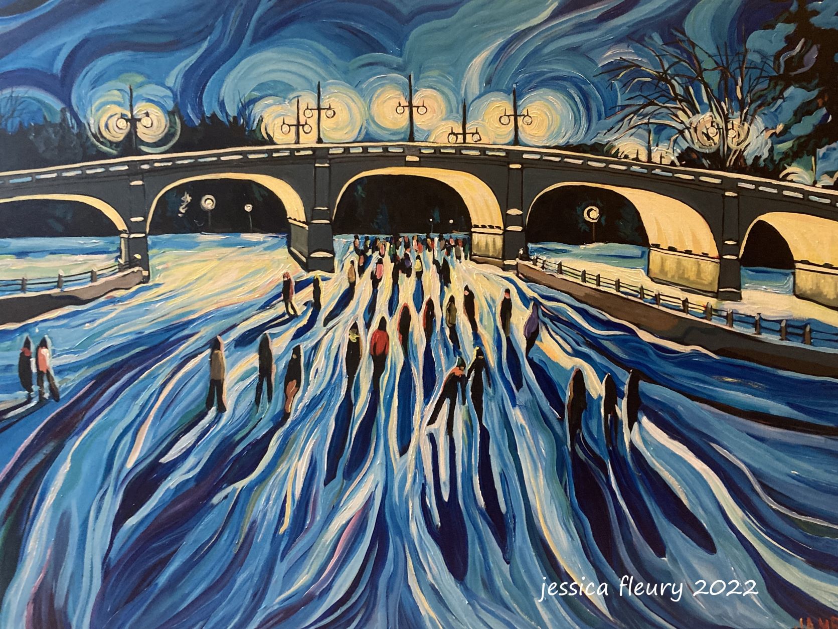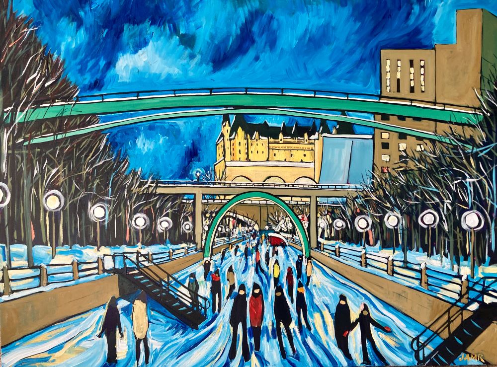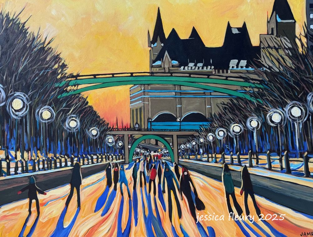 Nothing feels more like Ottawa than skating along the World’s Largest Skating Rink. I created this series of paintings to capture the vibrancy of this mid-winter event, where thousands of people gather on the canal to take part in this annual tradition.