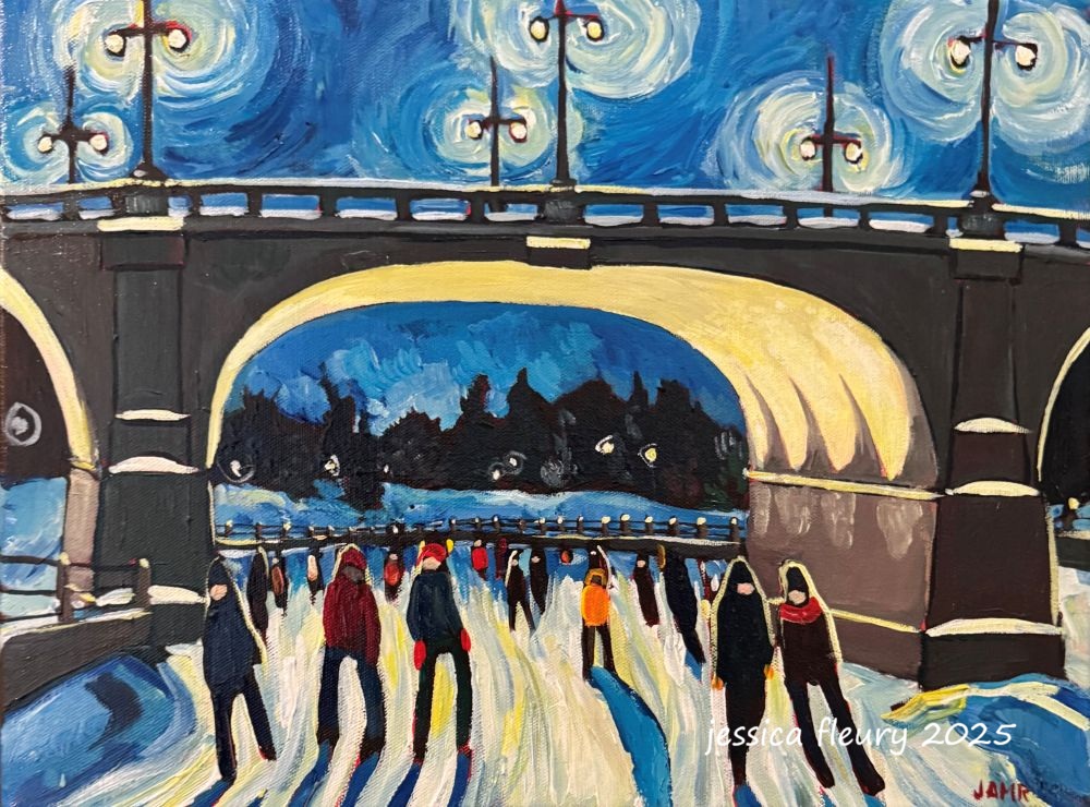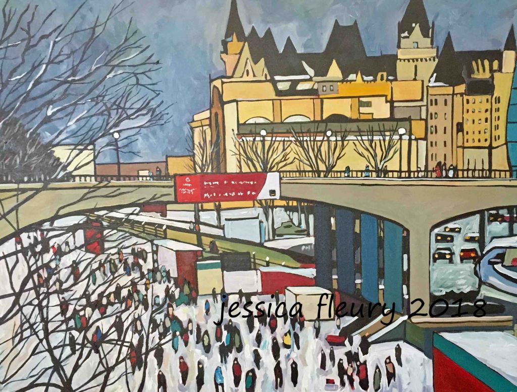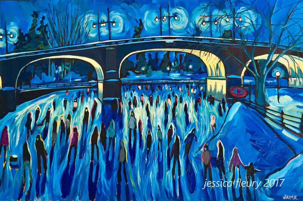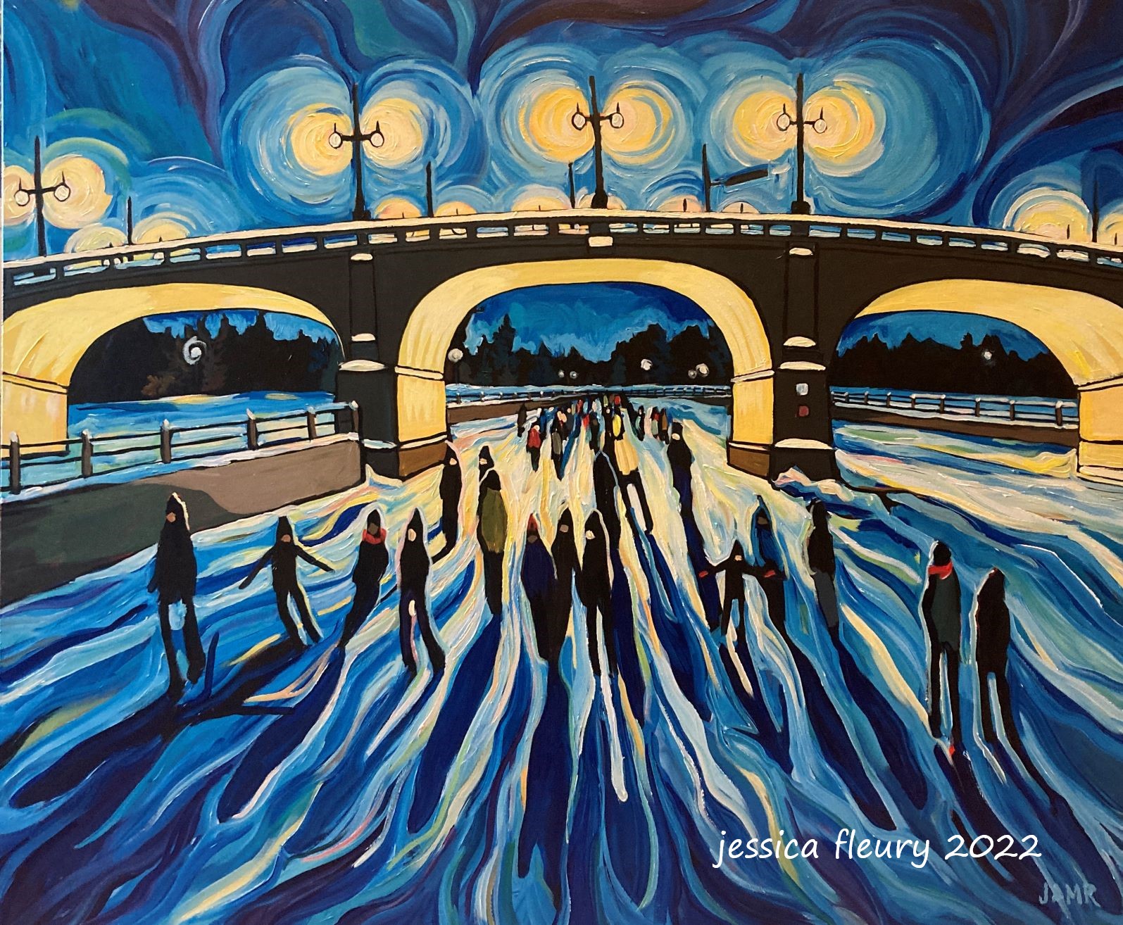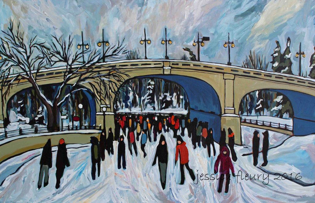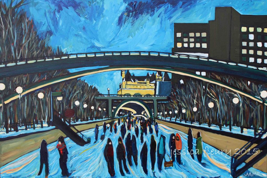 Nothing feels more like Ottawa than skating along the World’s Largest Skating Rink. I created this series of paintings to capture the vibrancy of this mid-winter event, where thousands of people gather on the canal to take part in this annual tradition.