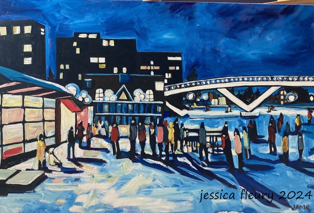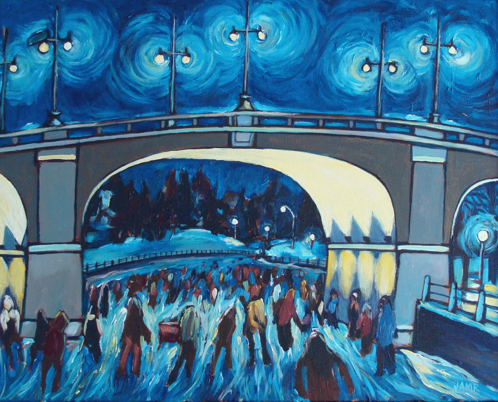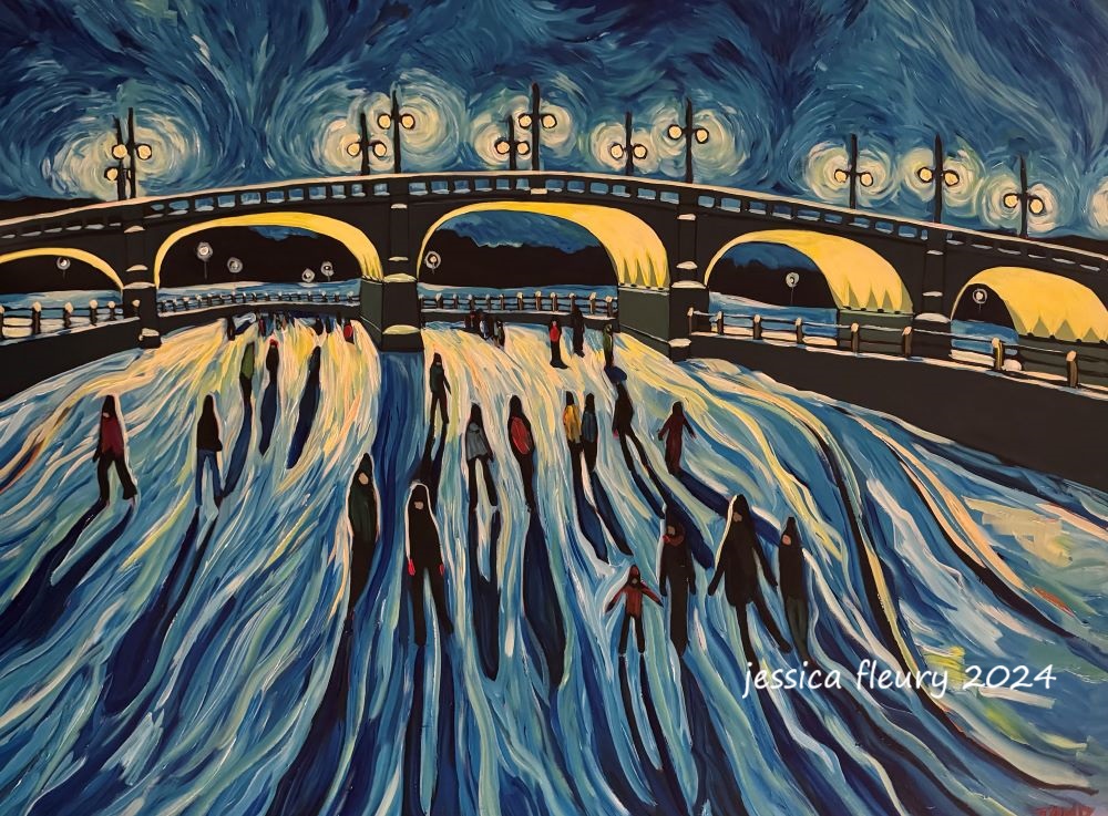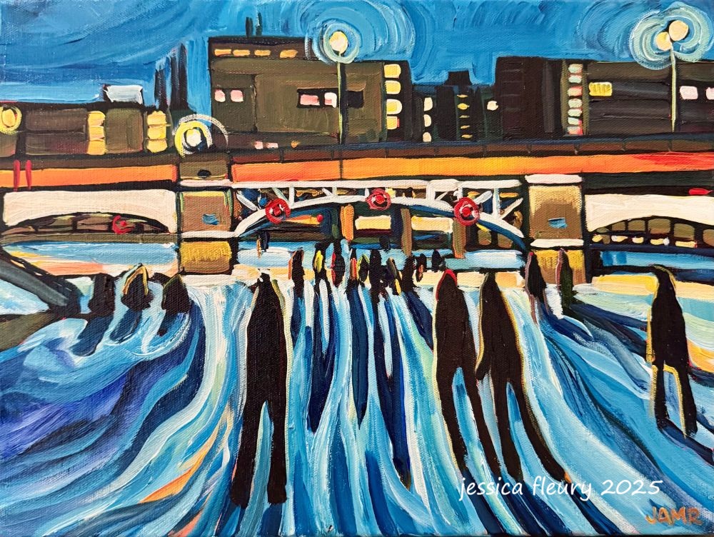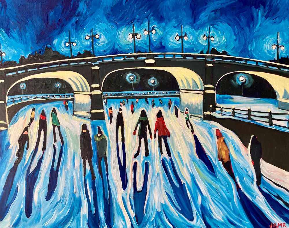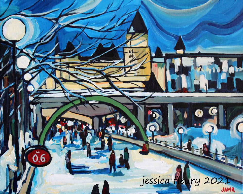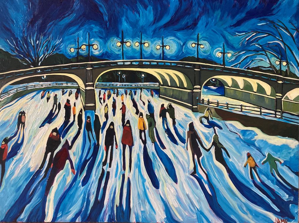 Nothing feels more like Ottawa than skating along the World’s Largest Skating Rink. I created this series of paintings to capture the vibrancy of this mid-winter event, where thousands of people gather on the canal to take part in this annual tradition.