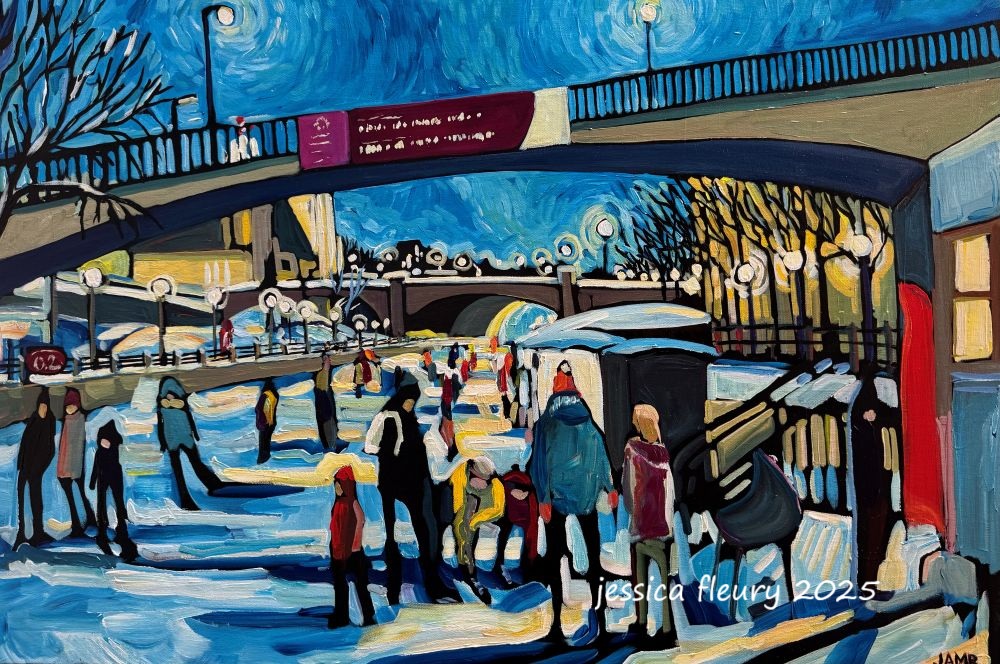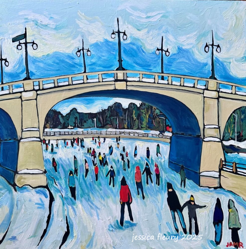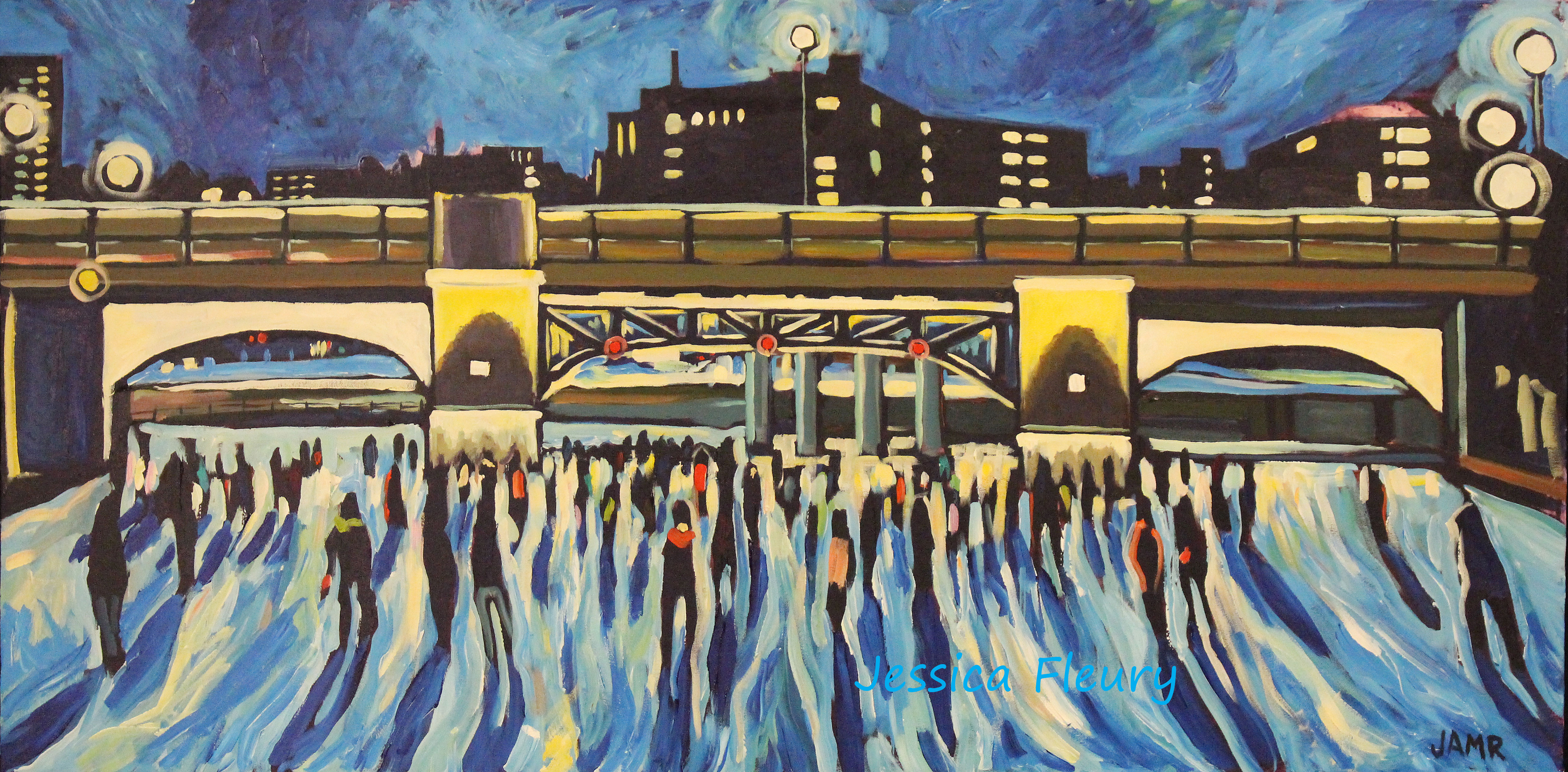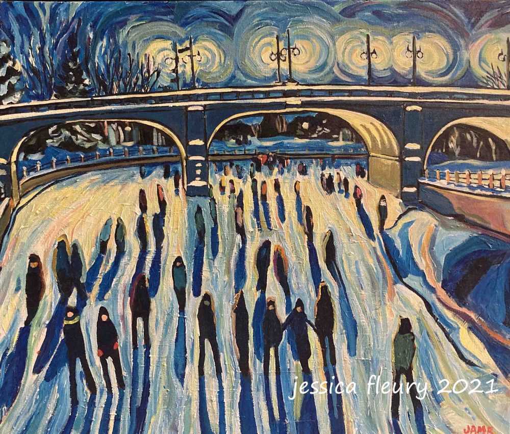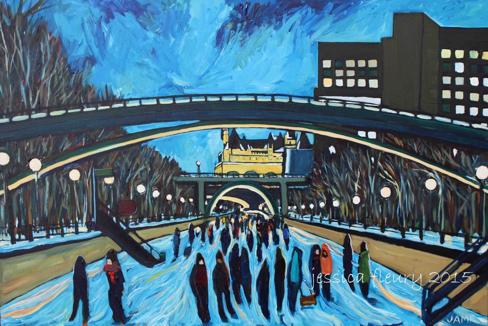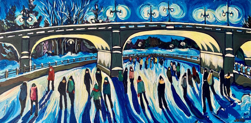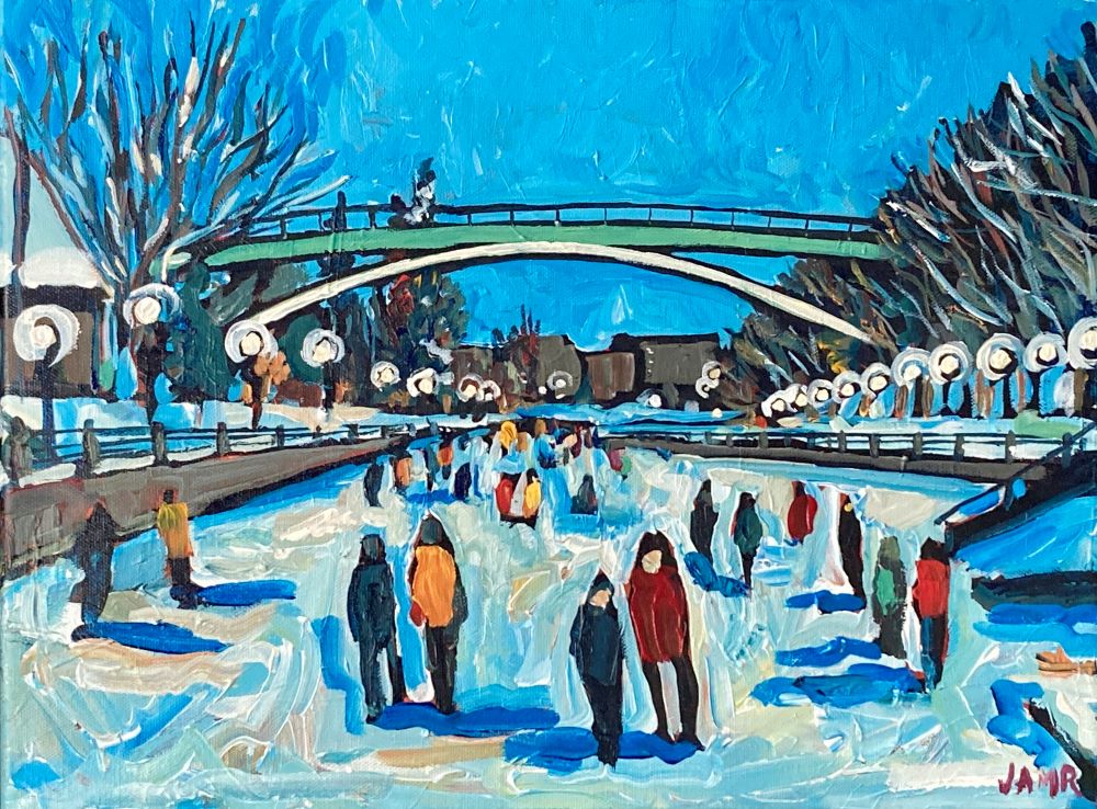 Nothing feels more like Ottawa than skating along the World’s Largest Skating Rink. I created this series of paintings to capture the vibrancy of this mid-winter event, where thousands of people gather on the canal to take part in this annual tradition.