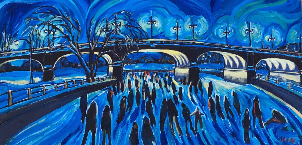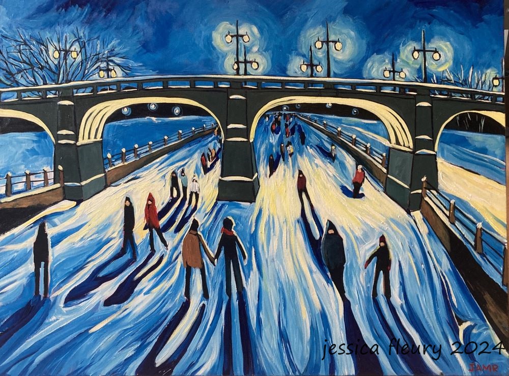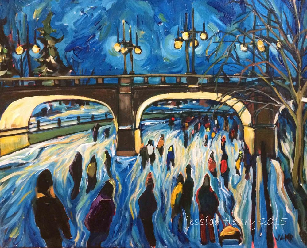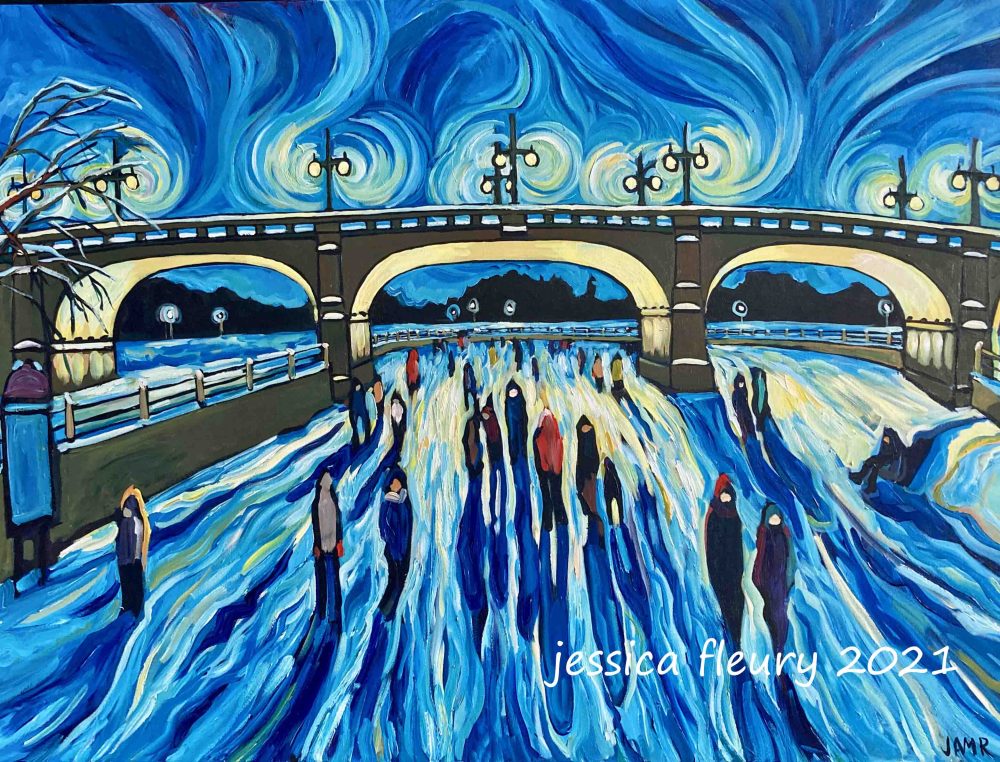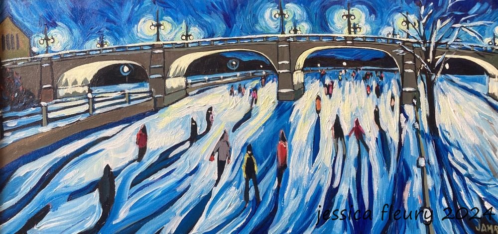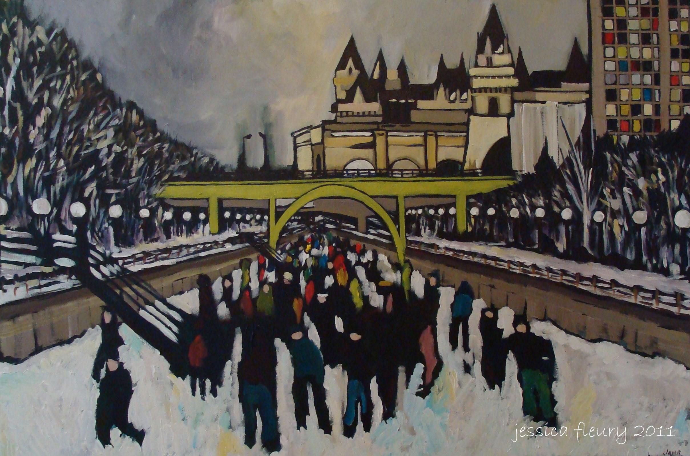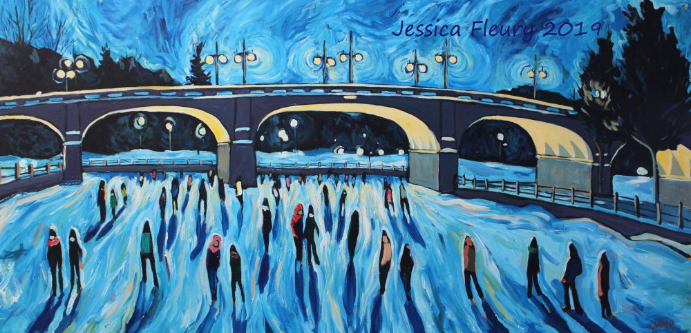 Nothing feels more like Ottawa than skating along the World’s Largest Skating Rink. I created this series of paintings to capture the vibrancy of this mid-winter event, where thousands of people gather on the canal to take part in this annual tradition.