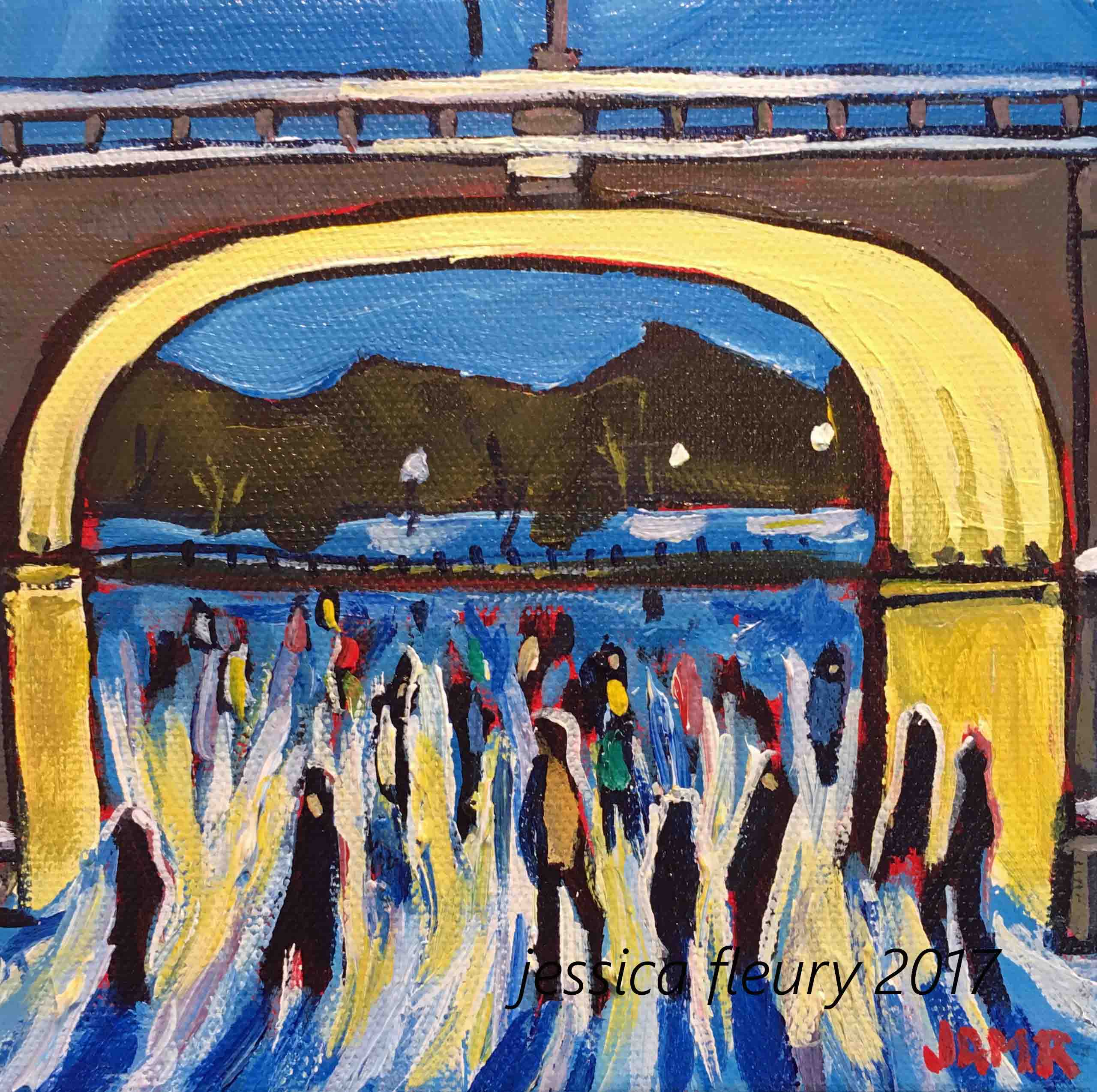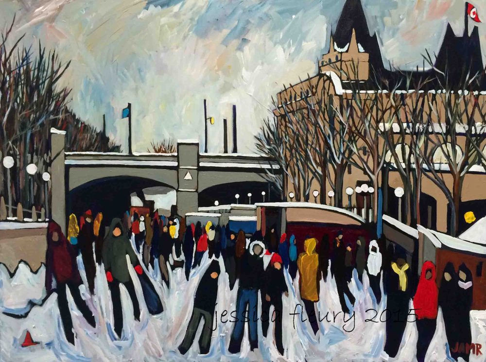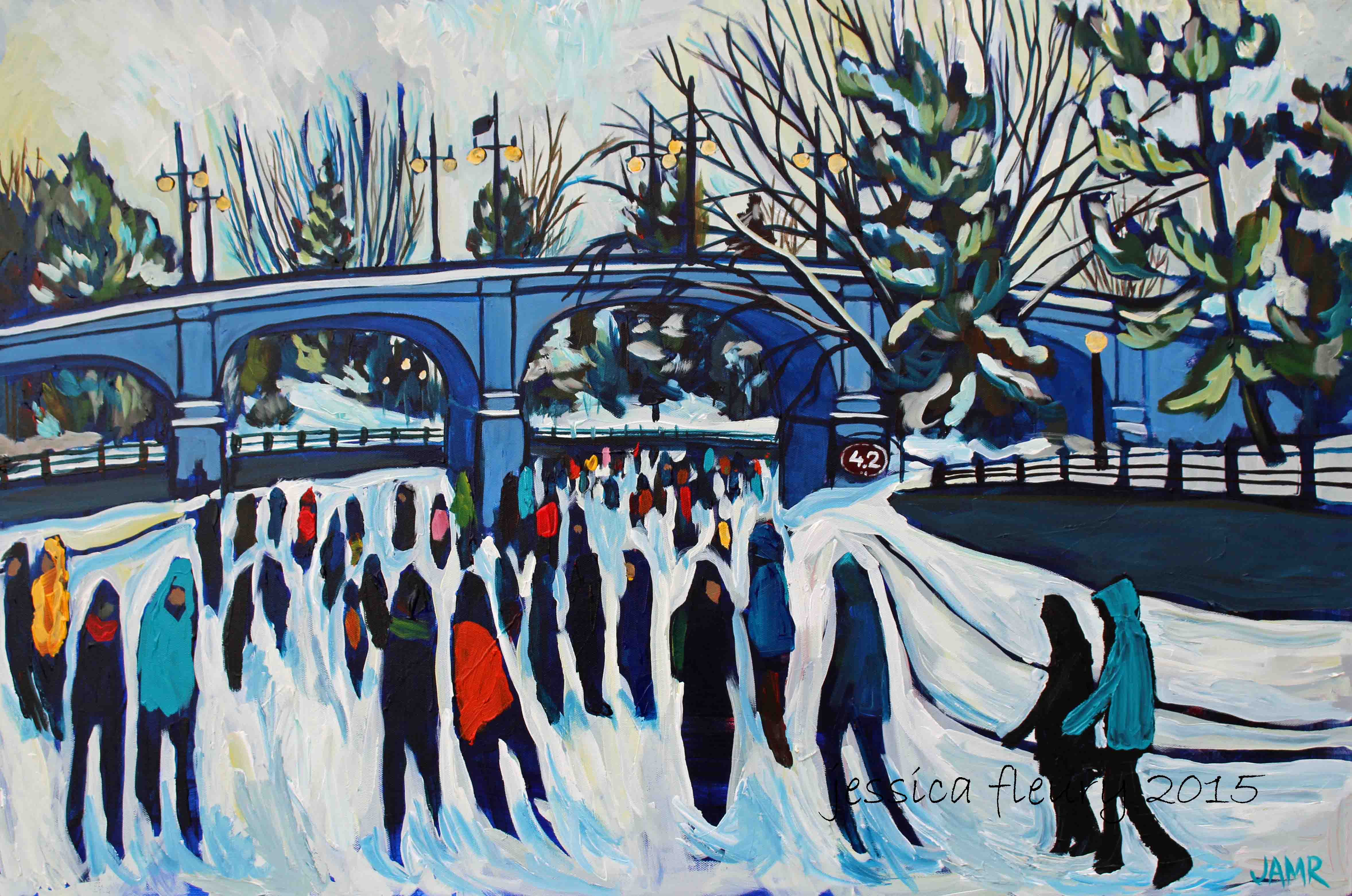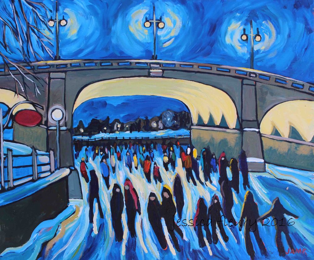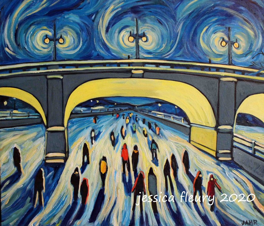 Nothing feels more like Ottawa than skating along the World’s Largest Skating Rink. I created this series of paintings to capture the vibrancy of this mid-winter event, where thousands of people gather on the canal to take part in this annual tradition.