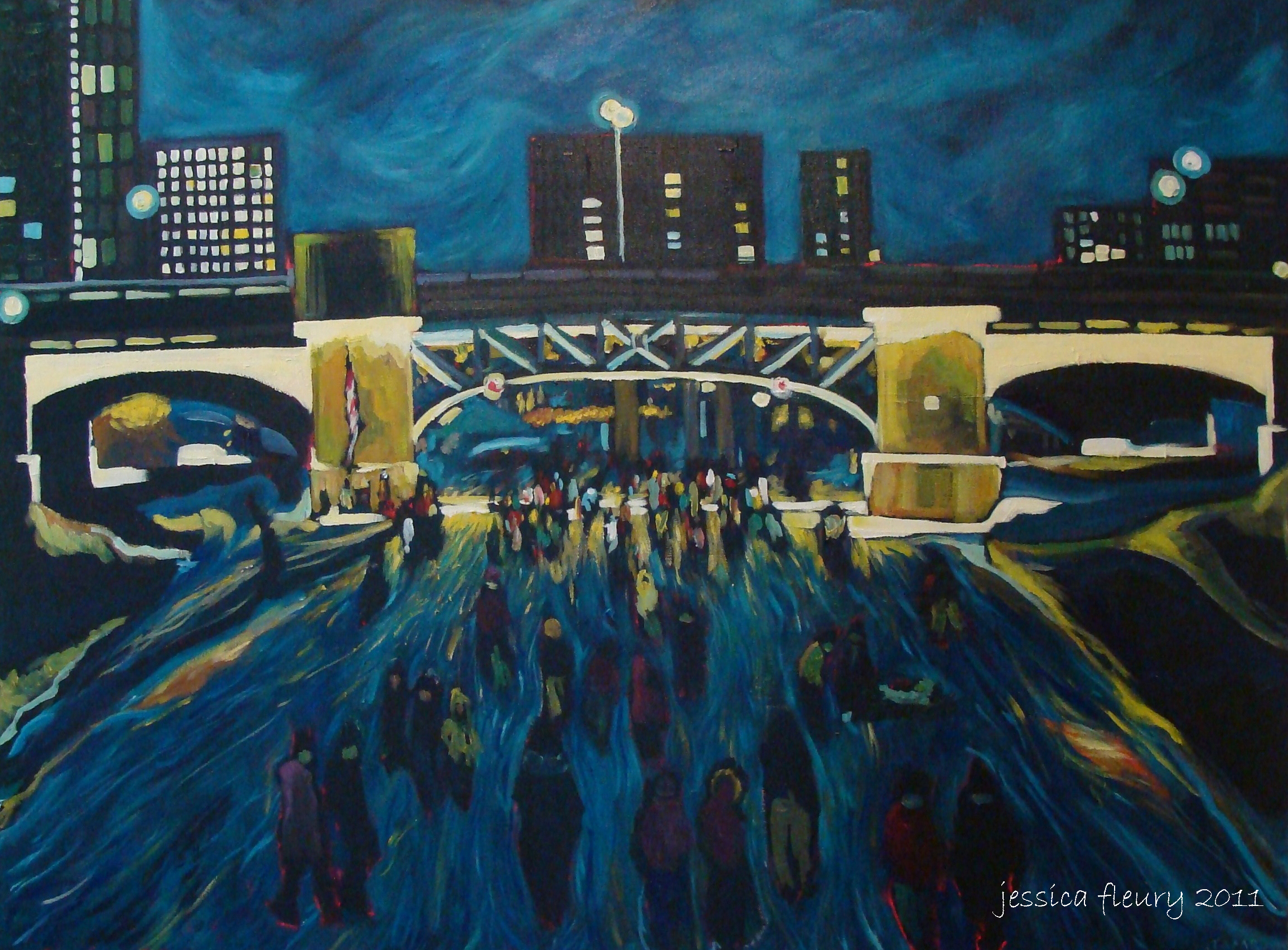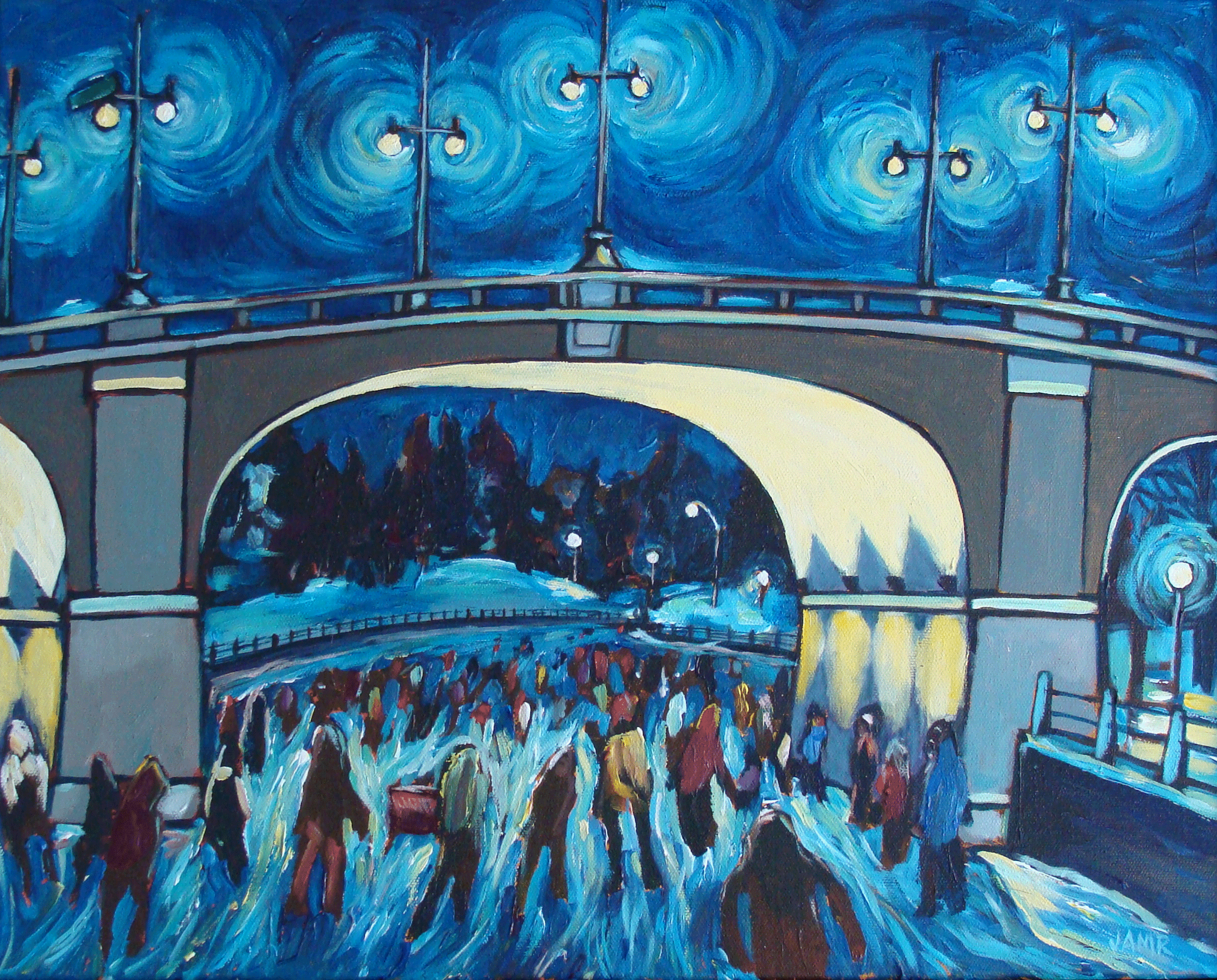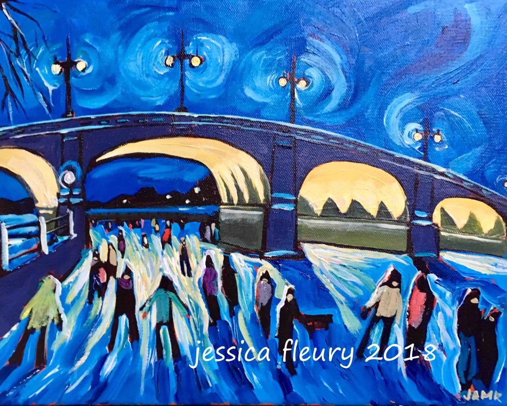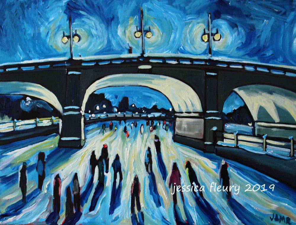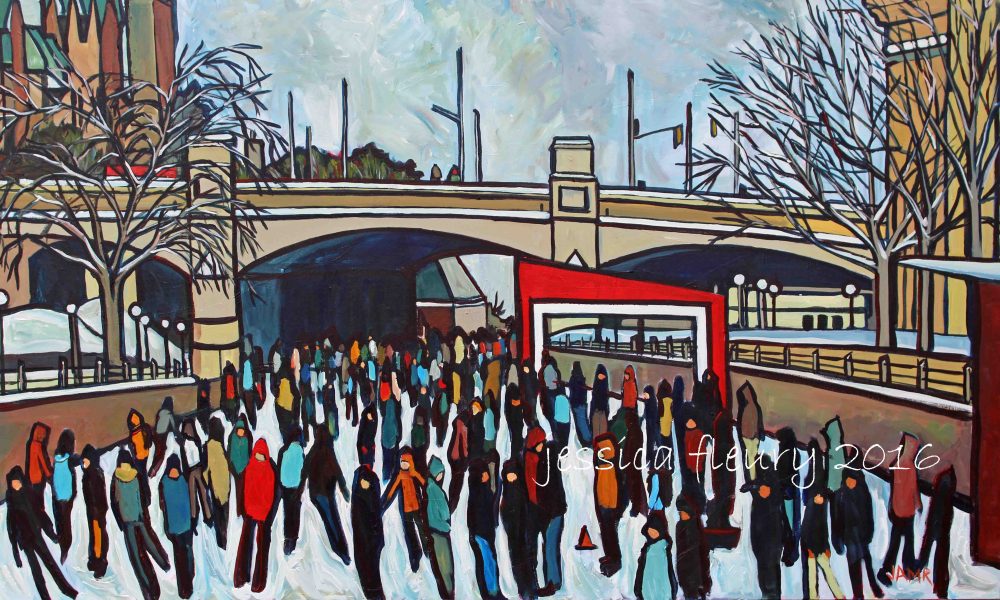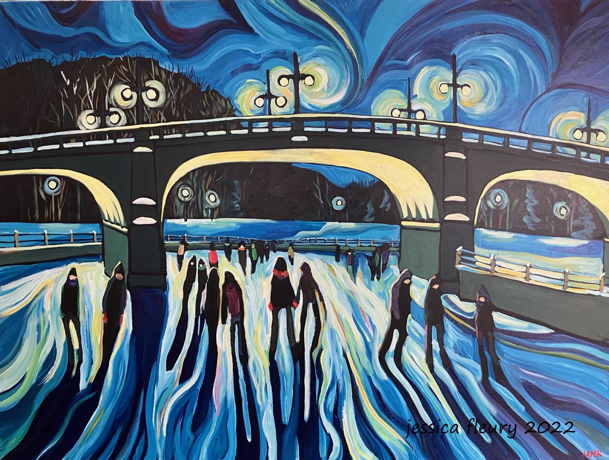 Nothing feels more like Ottawa than skating along the World’s Largest Skating Rink. I created this series of paintings to capture the vibrancy of this mid-winter event, where thousands of people gather on the canal to take part in this annual tradition.