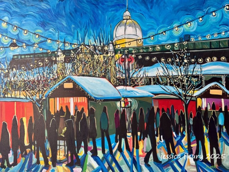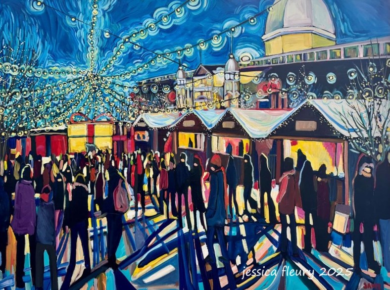 The winter break has arrived along with freezing cold temperatures. I enjoy all the lights and festivities that come with this time of year. I also enjoy the abundance of studio time that is so hard to find during the regular grind of the school year. I was fortunate to take several trips on the Canal last year and have some great resources to work from and I was pleased to visit Lansdowne Christmas Market at the beginning of the month to enjoy the sights and smells. All the best, and happy New Year!
